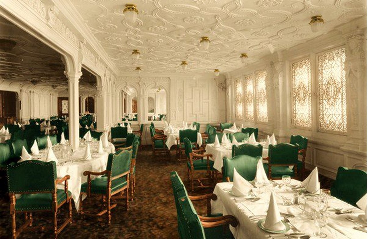 1st class dining room titanic. The titanic's food came with the purchase of the ticket and third class definately took advantage of this; The dining room on the titanic was probably almost identical. Of the 2,224 passengers and crew aboard, more than 1,500 died in the sinking. First class the first class reception was a room located on d deck at the foot of the grand staircase. James cameron even asked the original manufactures to recreated the same carpet that was on the real titanic to use on his titanic set.but. Titanic first class dining room | titanic history, titanic. First class berth $150 ($2,613), second class $60 ($1,044) and. The titanic had three main dining rooms for first, second and third class passengers. Only one very blurry photograph exists of the titanic's 1st class dining room. First class dining room aboard rms titanic. The first class reception was a room located on d deck, at the foot of the grand staircase. Their dining room was 114 feet long and spanned the full width of the ship.