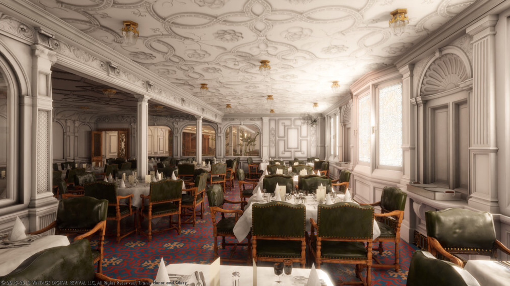 Much of the sister ships interiors were designed and fitted by the same teams of craftsmen and artisans, as the two ships were constructed at nearly the same time. Seating 532 passengers at once, it was the largest dining room ever seen on a ship. In this video you are having dinner with the first class passengers in the dining ha. Whew, i couldn't imagine eating all that food, but back in the days of the titanic, the upper classes would eat very elaborate multi course meals, as well as a different wine pairing for each course. Titanic, first class dining room by crias on deviantart.